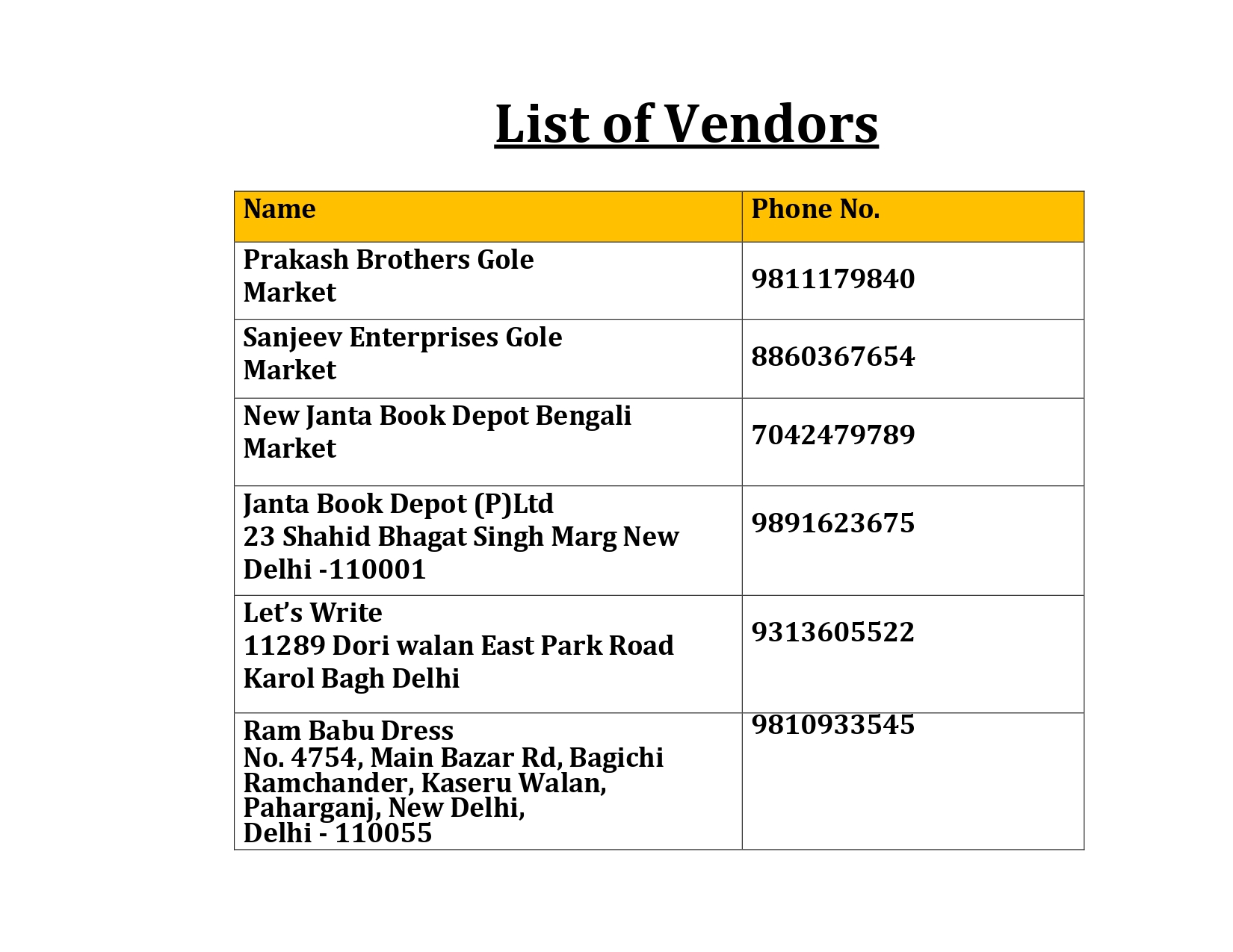 LIST OF VENDORS (2025-26)!